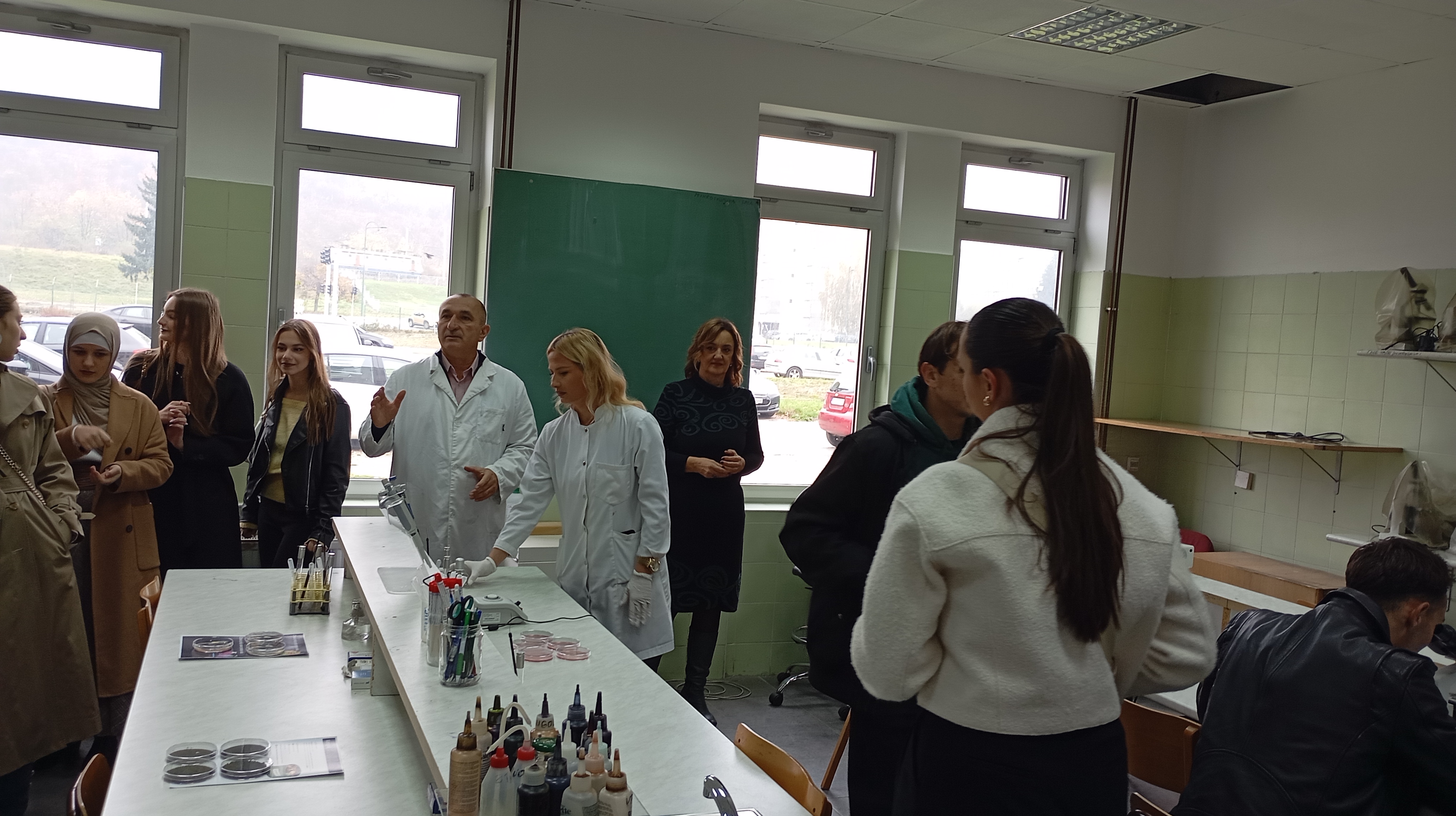 Tokom posjete, u mikrobiološkom laboratoriju, učenici su se pod vodstvom više asistentice Berine Imamović i prof. dr Sauda Hamidovića upoznali s osnovnim mikrobiološkim tehnikama: izradom brisa, nativnog preparata i posmatranjem mikroorganizama pod svjetlosnim mikroskopom. Također su vidjeli različite bakterijske kolonije na hranjivim podlogama te dobili uvid u mikrobiom i ulogu mikroorganizama u svakodnevnom životu, stičući prvo praktično iskustvo rada u laboratoriju.