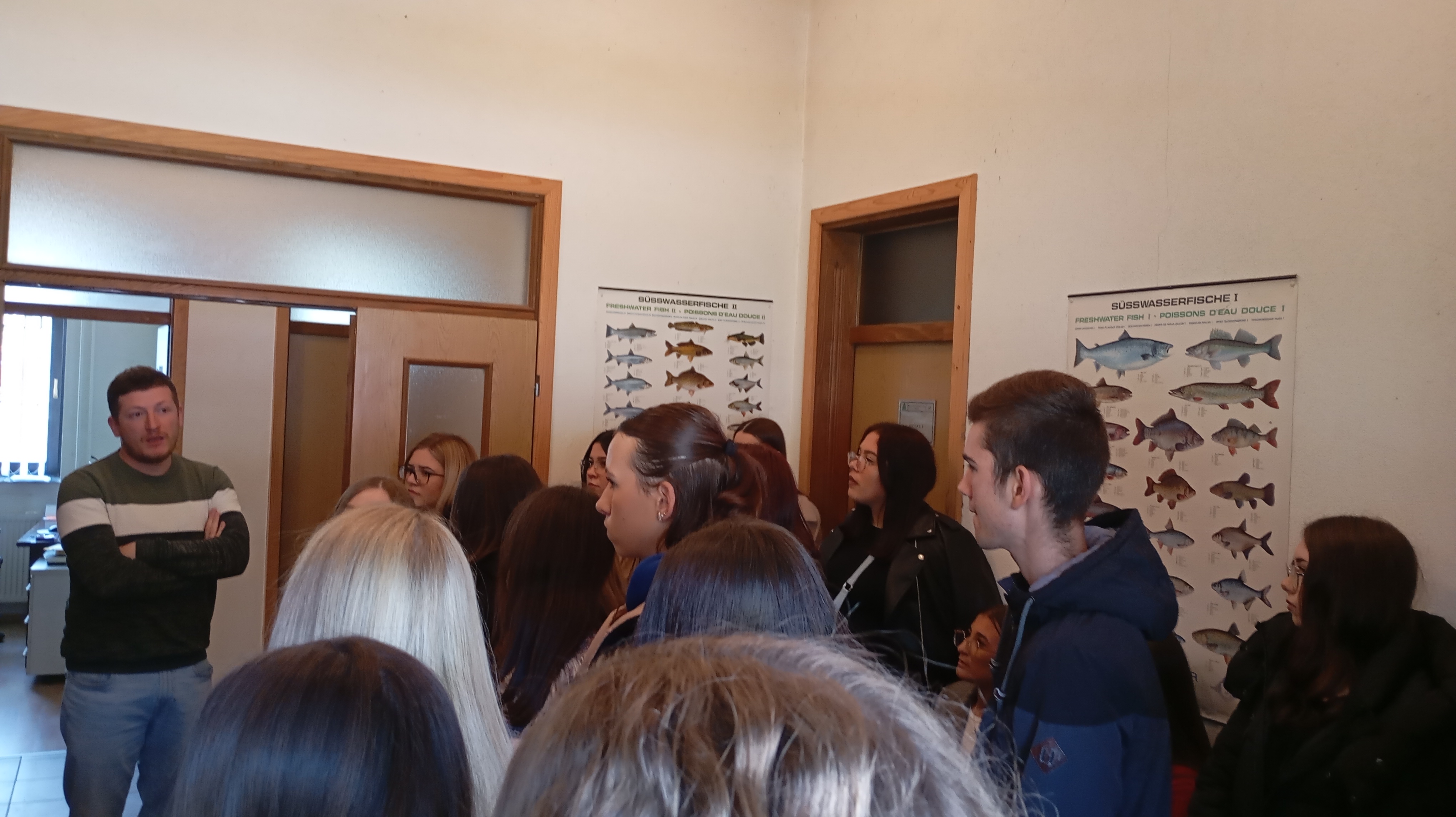 U Centru za akvakulturu i ribarstvo, viši asistent Dino Lepara upoznao je učenike sa ribljim vrstama karakterističnim za područje BiH, prikazao metode terenskog istraživanja koje se provode širom zemlje i regiona, te objasnio eksperimentalne postupke koji slijede nakon prikupljanja terenskih uzoraka.