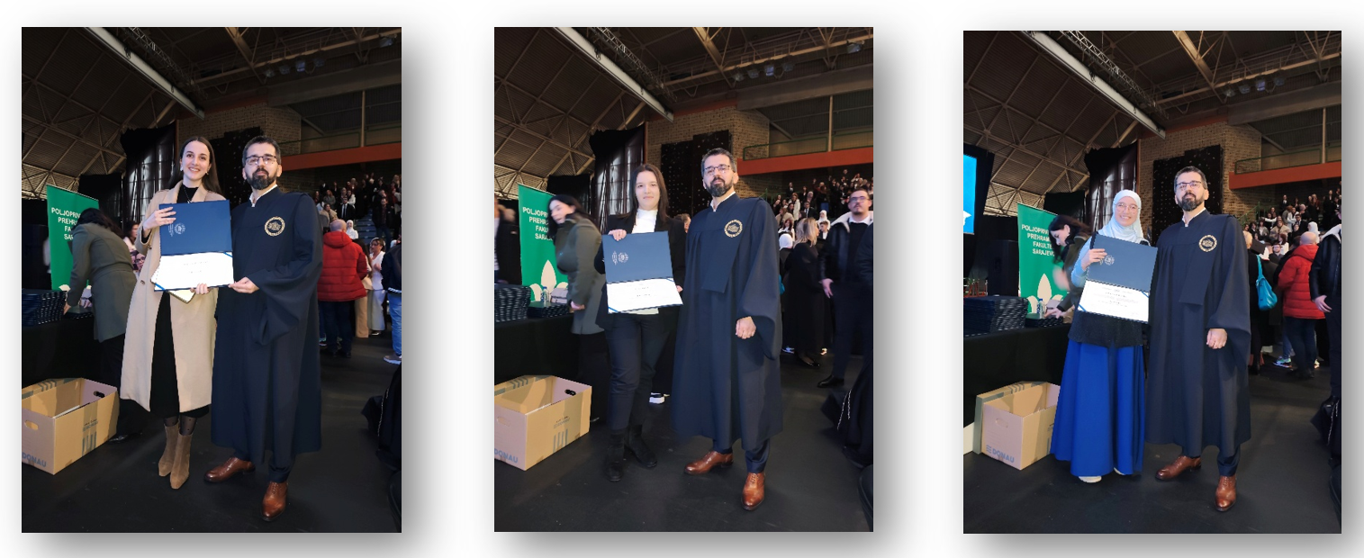Priznanje Zlatna značka Univerziteta u Sarajevu za studente/studentice koji su uspješno okončali prvi ciklus studija dobila ja diplomantica Melina Hećo i priznanje Srebrena značka diplomantice Hanan Velić i Tina Tadić. Priznanje Srebrena značka Univerziteta u Sarajevu za studente/studentice koji su uspješno okončali drugi ciklus studija dobila je magistrantica Amina Šerbo.