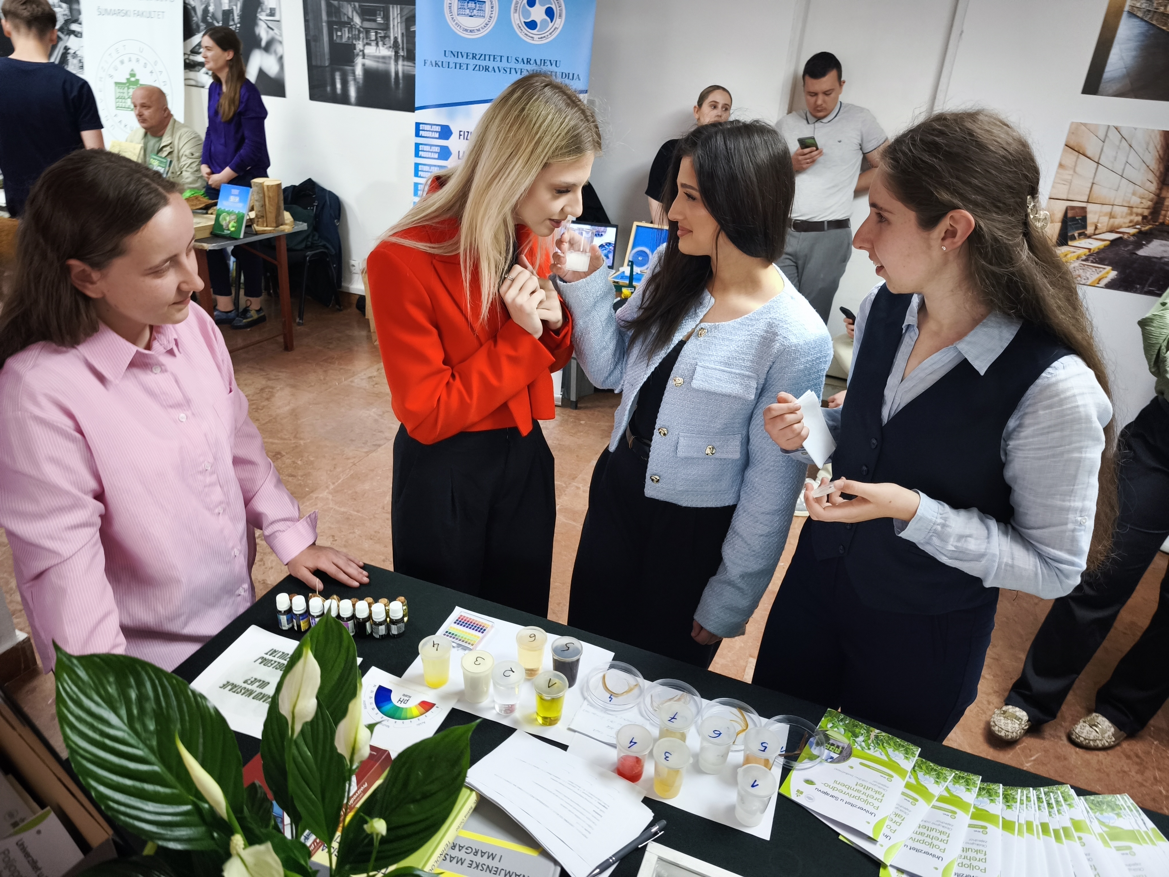 Fakultet su predstavljale doc. dr. Emina Sijahović, doc. dr. Ćerima Zahirović Sinanović, prof. dr. Lejla Biber, Aida Softić, MA i Muamer Pekmeza, MA, uz podršku studentica Dajane Šeovac i Elme Seferović sa Odsjeka za prehrambene tehnologije, koje su svojim iskustvima dodatno približile studij budućim studentima.